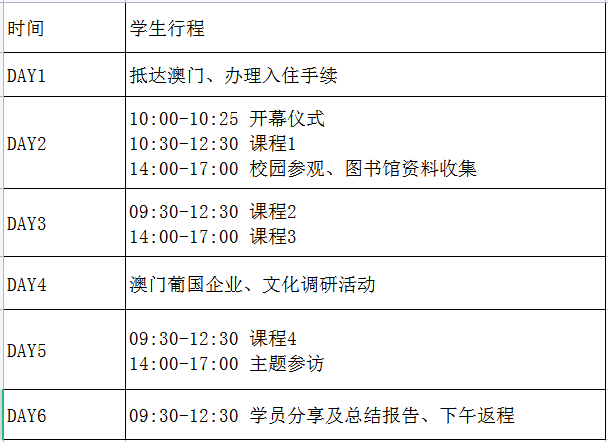 *上述行程、課程、參訪安排或會受不確定因素影響而作出調整(如場地臨時關閉、惡劣天氣等),澳門大學將保留最終決定權。